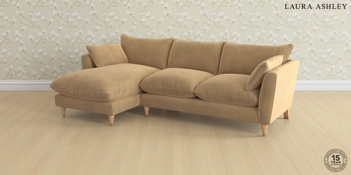 6.12.1 Buy Casterton by Laura Ashley Medium Sofa Chaise - Left Hand Lundar Chenille Caramel Natural Low Turned - Light Oak from the Next UK online shop Click here to use our accessible website