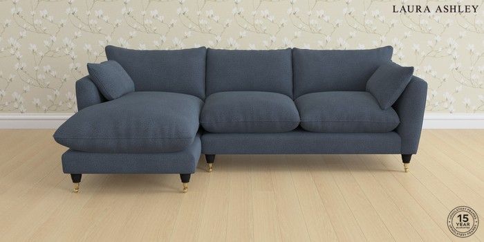 6.12.1 Buy Casterton by Laura Ashley Medium Sofa Chaise - Left Hand Lundar Chenille Navy Blue Low Brass Castor - Black from the Next UK online shop Click here to use our accessible website