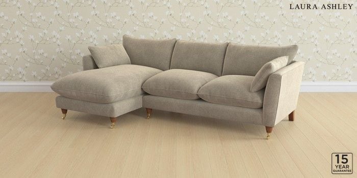 6.12.1 Buy Casterton by Laura Ashley Medium Sofa Chaise - Left Hand Lundar Chenille Truffle Natural Low Brass Castor - Teak from the Next UK online shop Click here to use our accessible website