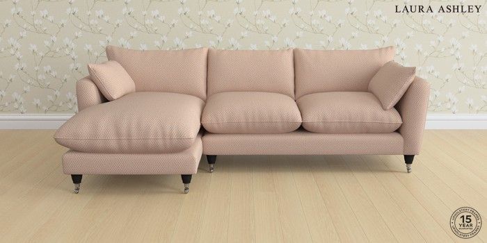 6.12.1 Buy Casterton by Laura Ashley Medium Sofa Chaise - Left Hand Melbreak Geo Chalk Pink Low Chrome Castor - Black from the Next UK online shop Click here to use our accessible website