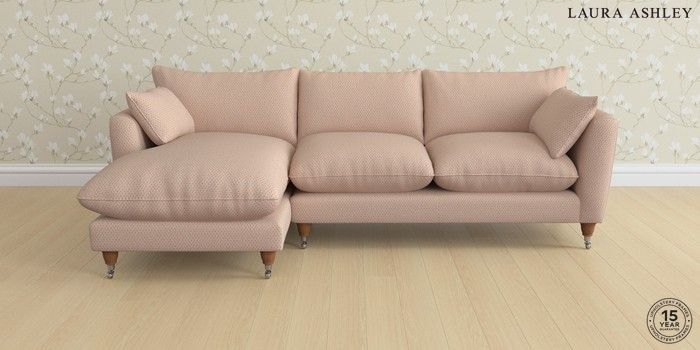 6.12.1 Buy Casterton by Laura Ashley Medium Sofa Chaise - Left Hand Melbreak Geo Chalk Pink Low Chrome Castor - Teak from the Next UK online shop Click here to use our accessible website