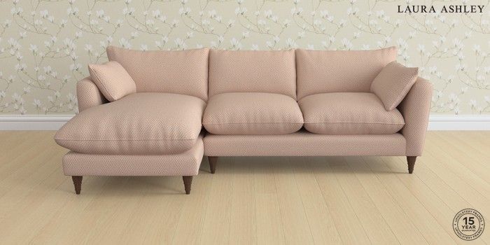 6.12.1 Buy Casterton by Laura Ashley Medium Sofa Chaise - Left Hand Melbreak Geo Chalk Pink Low Turned - Chestnut from the Next UK online shop Click here to use our accessible website