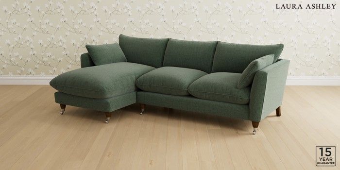 6.12.1 Buy Casterton by Laura Ashley Medium Sofa Chaise - Left Hand Nantmor Fern Green Low Chrome Castor - Teak from the Next UK online shop Click here to use our accessible website