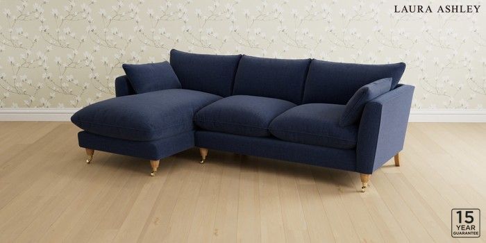 6.12.1 Buy Casterton by Laura Ashley Medium Sofa Chaise - Left Hand Nantmor Midnight Navy Low Brass Castor - Light Oak from the Next UK online shop Click here to use our accessible website