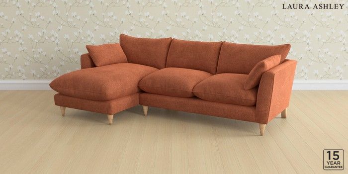 6.12.1 Buy Casterton by Laura Ashley Medium Sofa Chaise - Left Hand Nantmor Rust Orange Low Turned - Light Oak from the Next UK online shop Click here to use our accessible website