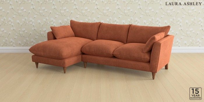 6.12.1 Buy Casterton by Laura Ashley Medium Sofa Chaise - Left Hand Nantmor Rust Orange Low Turned - Teak from the Next UK online shop Click here to use our accessible website