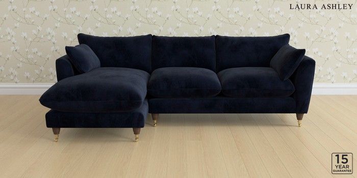 6.12.1 Buy Casterton by Laura Ashley Medium Sofa Chaise - Left Hand Orla Midnight Navy Low Brass Castor - Chestnut from the Next UK online shop Click here to use our accessible website