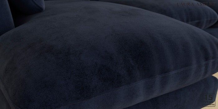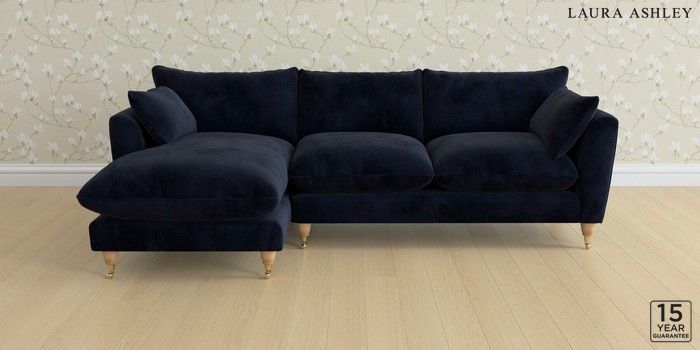 6.12.1 Buy Casterton by Laura Ashley Medium Sofa Chaise - Left Hand Orla Midnight Navy Low Brass Castor - Light Oak from the Next UK online shop Click here to use our accessible website