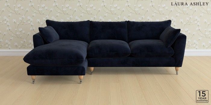 6.12.1 Buy Casterton by Laura Ashley Medium Sofa Chaise - Left Hand Orla Midnight Navy Low Chrome Castor - Light Oak from the Next UK online shop Click here to use our accessible website