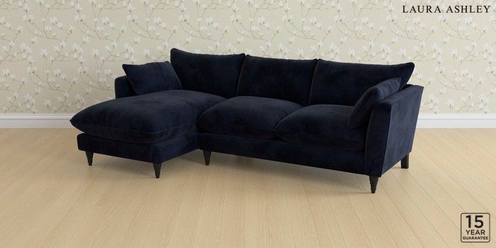 6.12.1 Buy Casterton by Laura Ashley Medium Sofa Chaise - Left Hand Orla Midnight Navy Low Turned - Black from the Next UK online shop Click here to use our accessible website