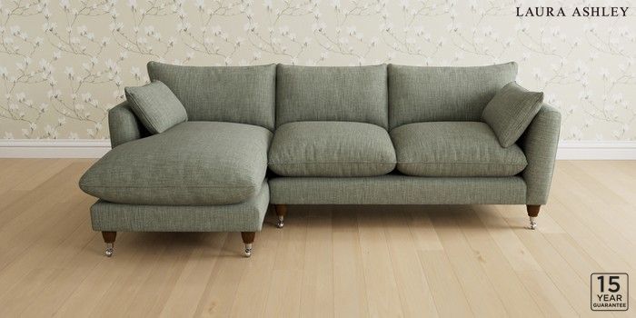 6.12.1 Buy Casterton by Laura Ashley Medium Sofa Chaise - Left Hand Bainton Sage Green Low Chrome Castor - Teak from the Next UK online shop Click here to use our accessible website