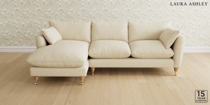 6.12.1 Buy Casterton by Laura Ashley Medium Sofa Chaise - Left Hand Orla Oyster Natural Low Brass Castor - Light Oak from the Next UK online shop Click here to use our accessible website