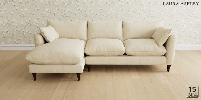 6.12.1 Buy Casterton by Laura Ashley Medium Sofa Chaise - Left Hand Orla Oyster Natural Low Turned - Chestnut from the Next UK online shop Click here to use our accessible website
