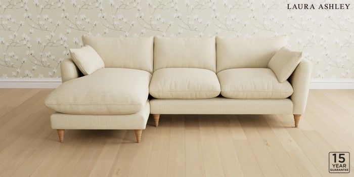 6.12.1 Buy Casterton by Laura Ashley Medium Sofa Chaise - Left Hand Orla Oyster Natural Low Turned - Light Oak from the Next UK online shop Click here to use our accessible website