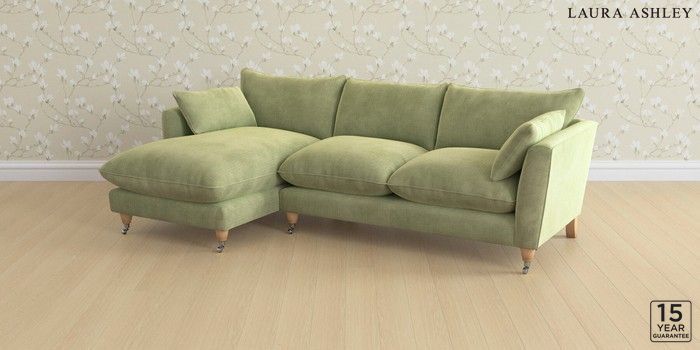 6.12.1 Buy Casterton by Laura Ashley Medium Sofa Chaise - Left Hand Orla Pale Hedgerow Green Low Chrome Castor - Light Oak from the Next UK online shop Click here to use our accessible website