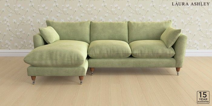 6.12.1 Buy Casterton by Laura Ashley Medium Sofa Chaise - Left Hand Orla Pale Hedgerow Green Low Chrome Castor - Teak from the Next UK online shop Click here to use our accessible website