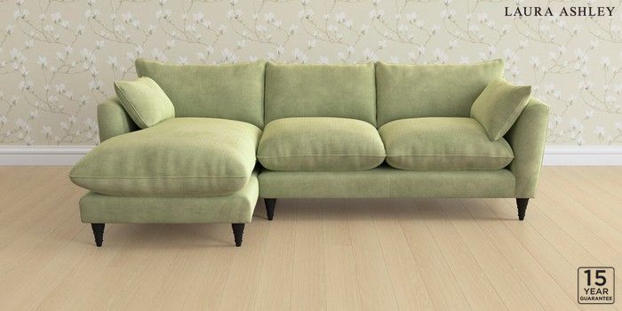 6.12.1 Buy Casterton by Laura Ashley Medium Sofa Chaise - Left Hand Orla Pale Hedgerow Green Low Turned - Black from the Next UK online shop Click here to use our accessible website