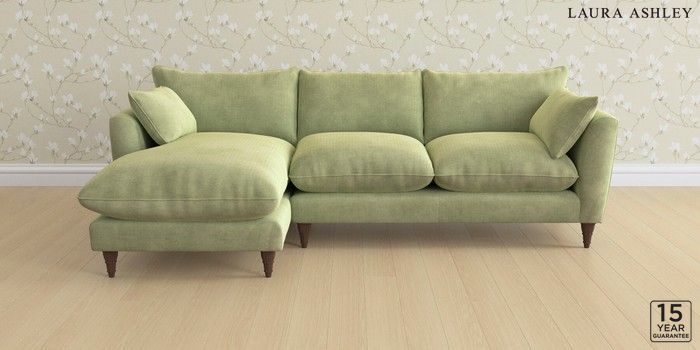 6.12.1 Buy Casterton by Laura Ashley Medium Sofa Chaise - Left Hand Orla Pale Hedgerow Green Low Turned - Chestnut from the Next UK online shop Click here to use our accessible website