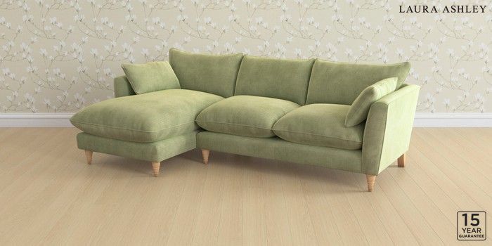 6.12.1 Buy Casterton by Laura Ashley Medium Sofa Chaise - Left Hand Orla Pale Hedgerow Green Low Turned - Light Oak from the Next UK online shop Click here to use our accessible website