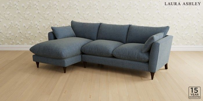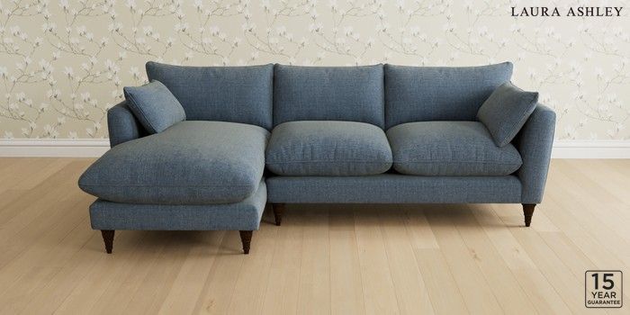 6.12.1 Buy Casterton by Laura Ashley Medium Sofa Chaise - Left Hand Orla Seaspray Blue Low Turned - Chestnut from the Next UK online shop Click here to use our accessible website