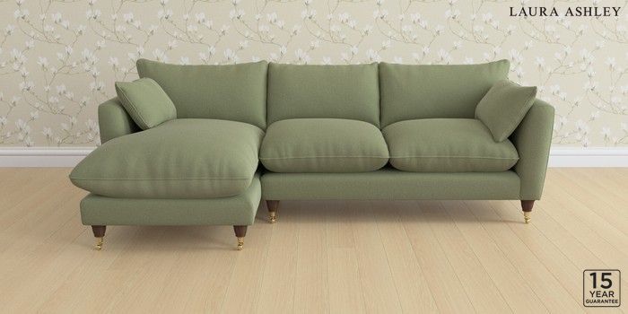 6.12.1 Buy Casterton by Laura Ashley Medium Sofa Chaise - Left Hand Peyton Hedgerow Green Low Brass Castor - Chestnut from the Next UK online shop Click here to use our accessible website