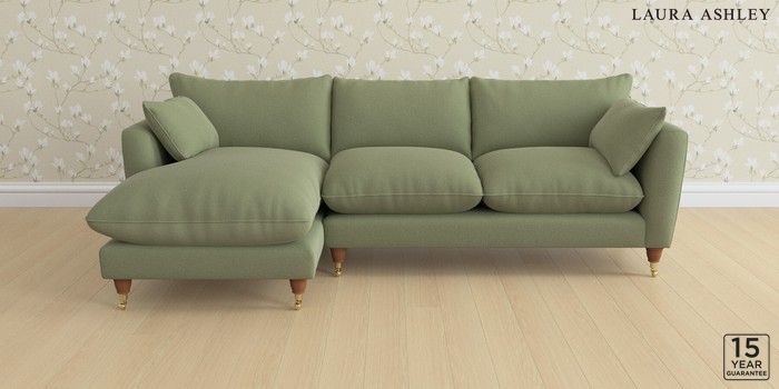 6.12.1 Buy Casterton by Laura Ashley Medium Sofa Chaise - Left Hand Peyton Hedgerow Green Low Brass Castor - Teak from the Next UK online shop Click here to use our accessible website