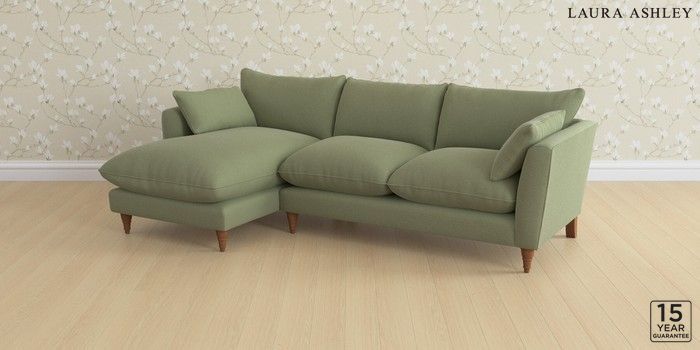 6.12.1 Buy Casterton by Laura Ashley Medium Sofa Chaise - Left Hand Peyton Hedgerow Green Low Turned - Teak from the Next UK online shop Click here to use our accessible website