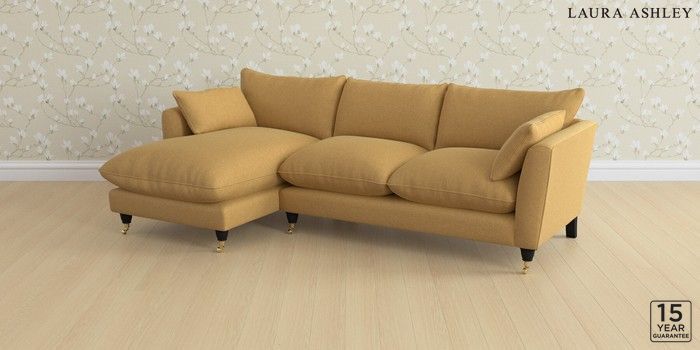 6.12.1 Buy Casterton by Laura Ashley Medium Sofa Chaise - Left Hand Peyton Ochre Yellow Low Brass Castor - Black from the Next UK online shop Click here to use our accessible website