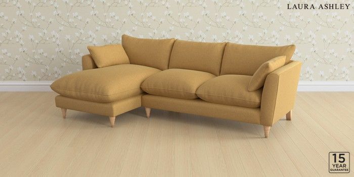6.12.1 Buy Casterton by Laura Ashley Medium Sofa Chaise - Left Hand Peyton Ochre Yellow Low Turned - Light Oak from the Next UK online shop Click here to use our accessible website