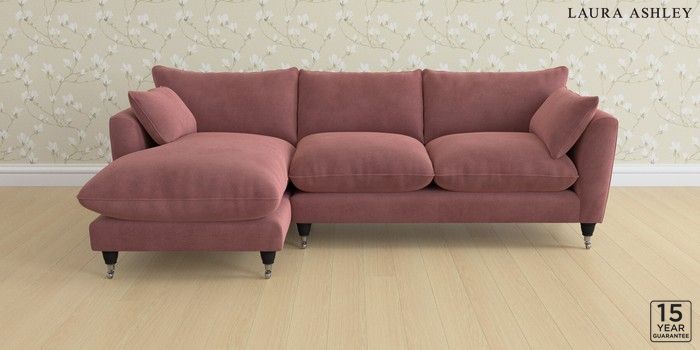 6.12.1 Buy Casterton by Laura Ashley Medium Sofa Chaise - Left Hand Peyton Plum Purple Low Chrome Castor - Black from the Next UK online shop Click here to use our accessible website