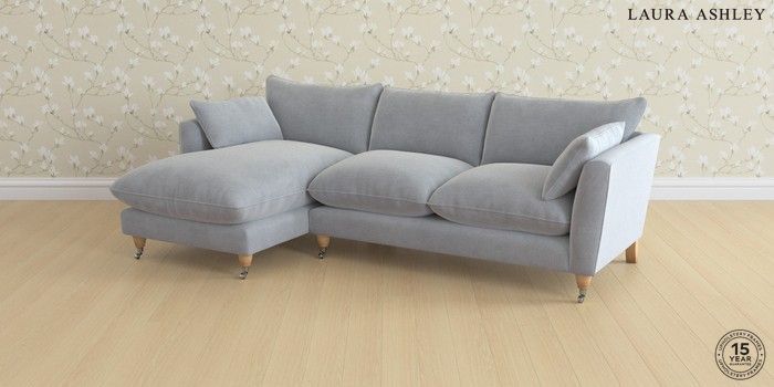 6.12.1 Buy Casterton by Laura Ashley Medium Sofa Chaise - Left Hand Peyton Powder Blue Low Chrome Castor - Light Oak from the Next UK online shop Click here to use our accessible website