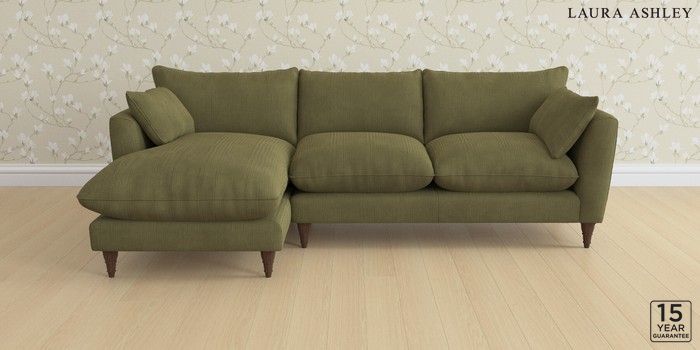 6.12.1 Buy Casterton by Laura Ashley Medium Sofa Chaise - Left Hand Sinclair Cord Ivy Green Low Turned - Chestnut from the Next UK online shop Click here to use our accessible website