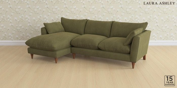 6.12.1 Buy Casterton by Laura Ashley Medium Sofa Chaise - Left Hand Sinclair Cord Ivy Green Low Turned - Teak from the Next UK online shop Click here to use our accessible website