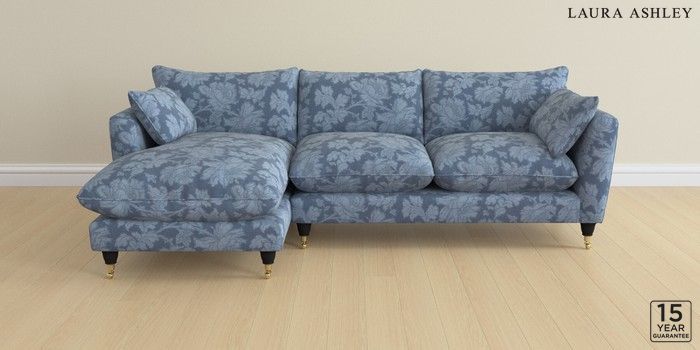 6.12.1 Buy Casterton by Laura Ashley Medium Sofa Chaise - Left Hand Tamara Dusky Seaspray Blue Low Brass Castor - Black from the Next UK online shop Click here to use our accessible website
