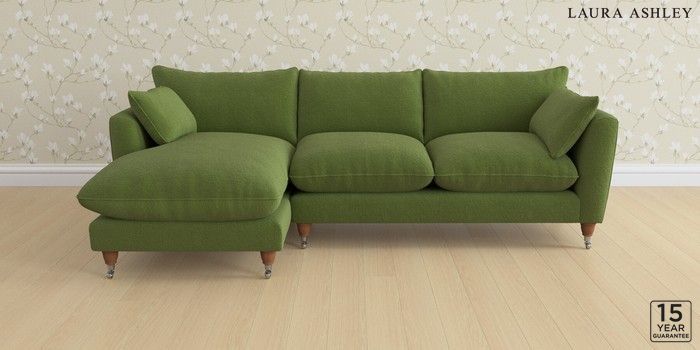 6.12.1 Buy Casterton by Laura Ashley Medium Sofa Chaise - Left Hand Tichwell Olive Green Low Chrome Castor - Teak from the Next UK online shop Click here to use our accessible website