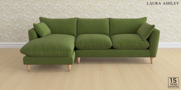 6.12.1 Buy Casterton by Laura Ashley Medium Sofa Chaise - Left Hand Tichwell Olive Green Low Turned - Light Oak from the Next UK online shop Click here to use our accessible website