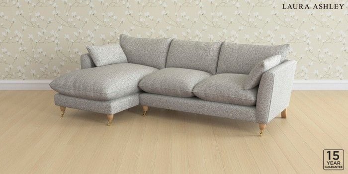 6.12.1 Buy Casterton by Laura Ashley Medium Sofa Chaise - Left Hand Tichwell Steel Grey Low Brass Castor - Light Oak from the Next UK online shop Click here to use our accessible website