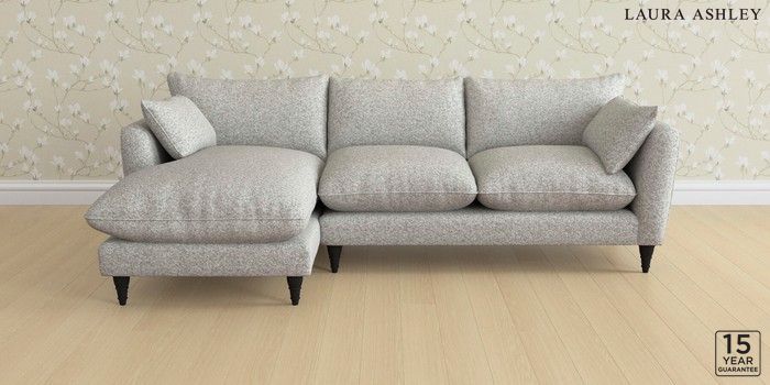 6.12.1 Buy Casterton by Laura Ashley Medium Sofa Chaise - Left Hand Tichwell Steel Grey Low Turned - Black from the Next UK online shop Click here to use our accessible website