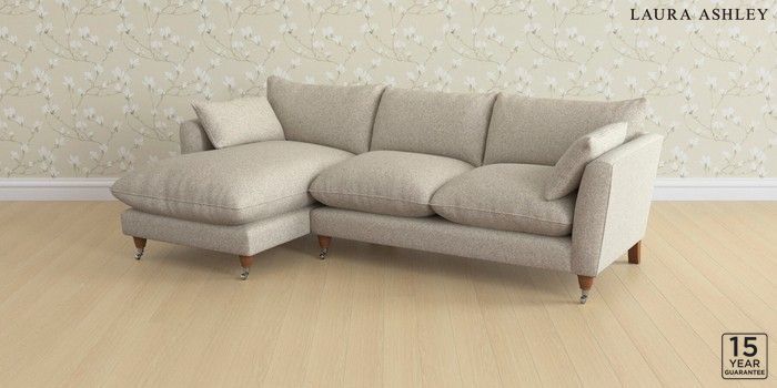 6.12.1 Buy Casterton by Laura Ashley Medium Sofa Chaise - Left Hand Tichwell Stone Natural Low Chrome Castor - Teak from the Next UK online shop Click here to use our accessible website