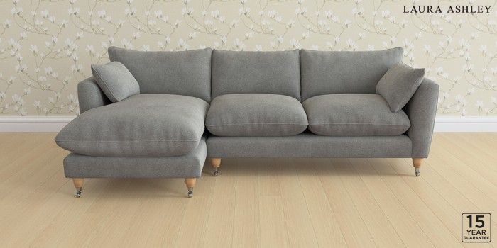 6.12.13 Buy Casterton by Laura Ashley Medium Sofa Chaise - Left Hand Wooton Dark Steel Grey Low Chrome Castor - Light Oak from the Next UK online shop Click here to use our accessible website
