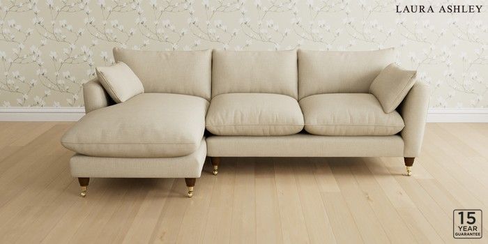 6.12.1 Buy Casterton by Laura Ashley Medium Sofa Chaise - Left Hand Wooton Natural Low Brass Castor - Teak from the Next UK online shop Click here to use our accessible website