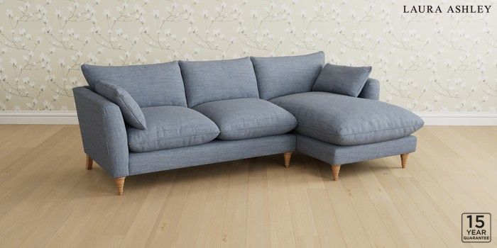 6.12.1 Buy Casterton by Laura Ashley Medium Sofa Chaise - Right Hand Harley Seaspray Blue Low Turned - Light Oak from the Next UK online shop Click here to use our accessible website