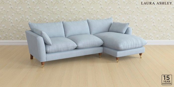 6.12.1 Buy Casterton by Laura Ashley Medium Sofa Chaise - Right Hand Ailsworth Newport Blue Low Brass Castor - Teak from the Next UK online shop Click here to use our accessible website