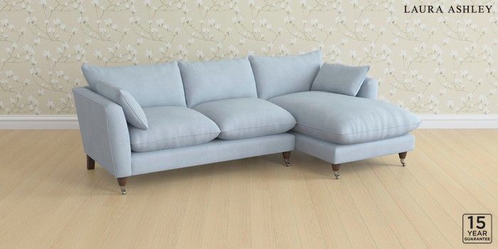 6.12.1 Buy Casterton by Laura Ashley Medium Sofa Chaise - Right Hand Ailsworth Newport Blue Low Chrome Castor - Chestnut from the Next UK online shop Click here to use our accessible website