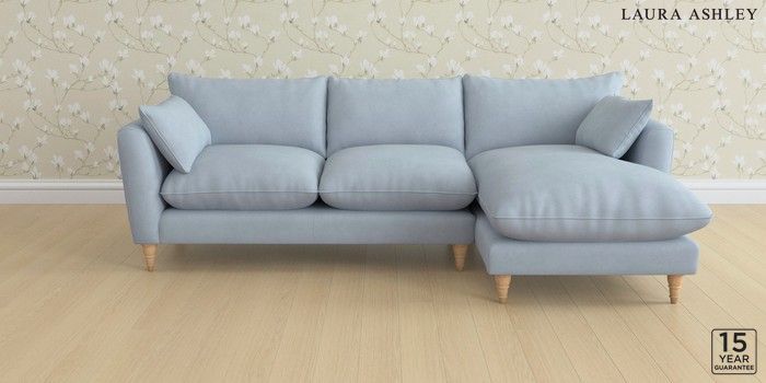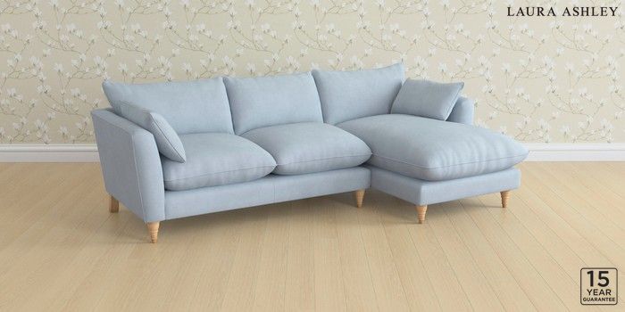 6.12.1 Buy Casterton by Laura Ashley Medium Sofa Chaise - Right Hand Ailsworth Newport Blue Low Turned - Light Oak from the Next UK online shop Click here to use our accessible website
