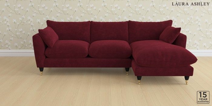 6.12.1 Buy Casterton by Laura Ashley Medium Sofa Chaise - Right Hand Alwyn Velvet Burgundy Red Low Brass Castor - Black from the Next UK online shop Click here to use our accessible website