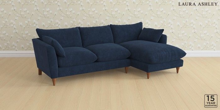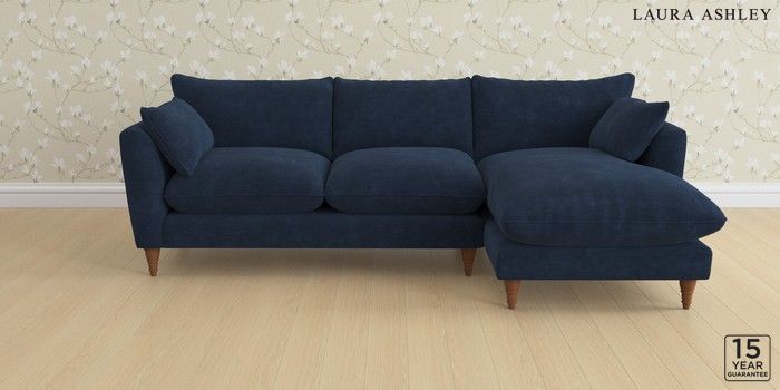 6.12.1 Buy Casterton by Laura Ashley Medium Sofa Chaise - Right Hand Alwyn Velvet Midnight Navy Low Turned - Teak from the Next UK online shop Click here to use our accessible website