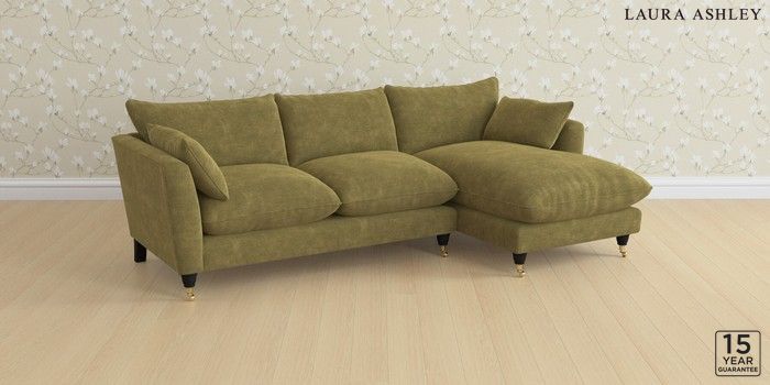 6.12.13 Buy Casterton by Laura Ashley Medium Sofa Chaise - Right Hand Alwyn Velvet Olive Green Low Brass Castor - Black from the Next UK online shop Click here to use our accessible website