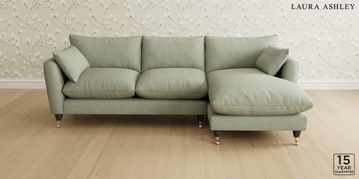 6.12.1 Buy Casterton by Laura Ashley Medium Sofa Chaise - Right Hand Anneliese Sage Green Low Brass Castor - Black from the Next UK online shop Click here to use our accessible website