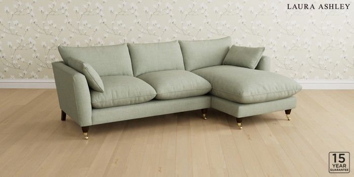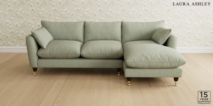 6.12.1 Buy Casterton by Laura Ashley Medium Sofa Chaise - Right Hand Anneliese Sage Green Low Brass Castor - Chestnut from the Next UK online shop Click here to use our accessible website